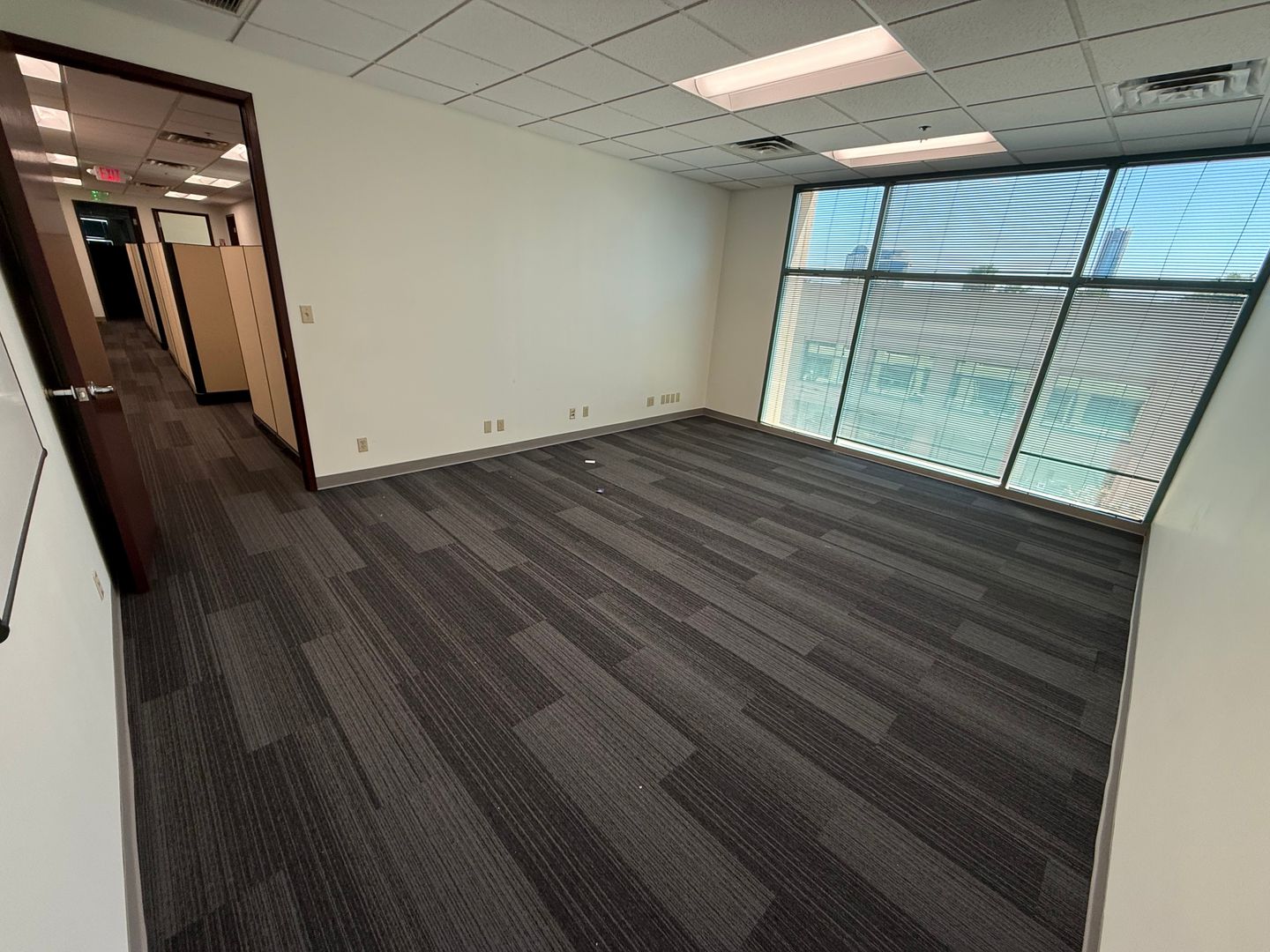 Versatile layout: open work areas, enclosed offices, and meeting space