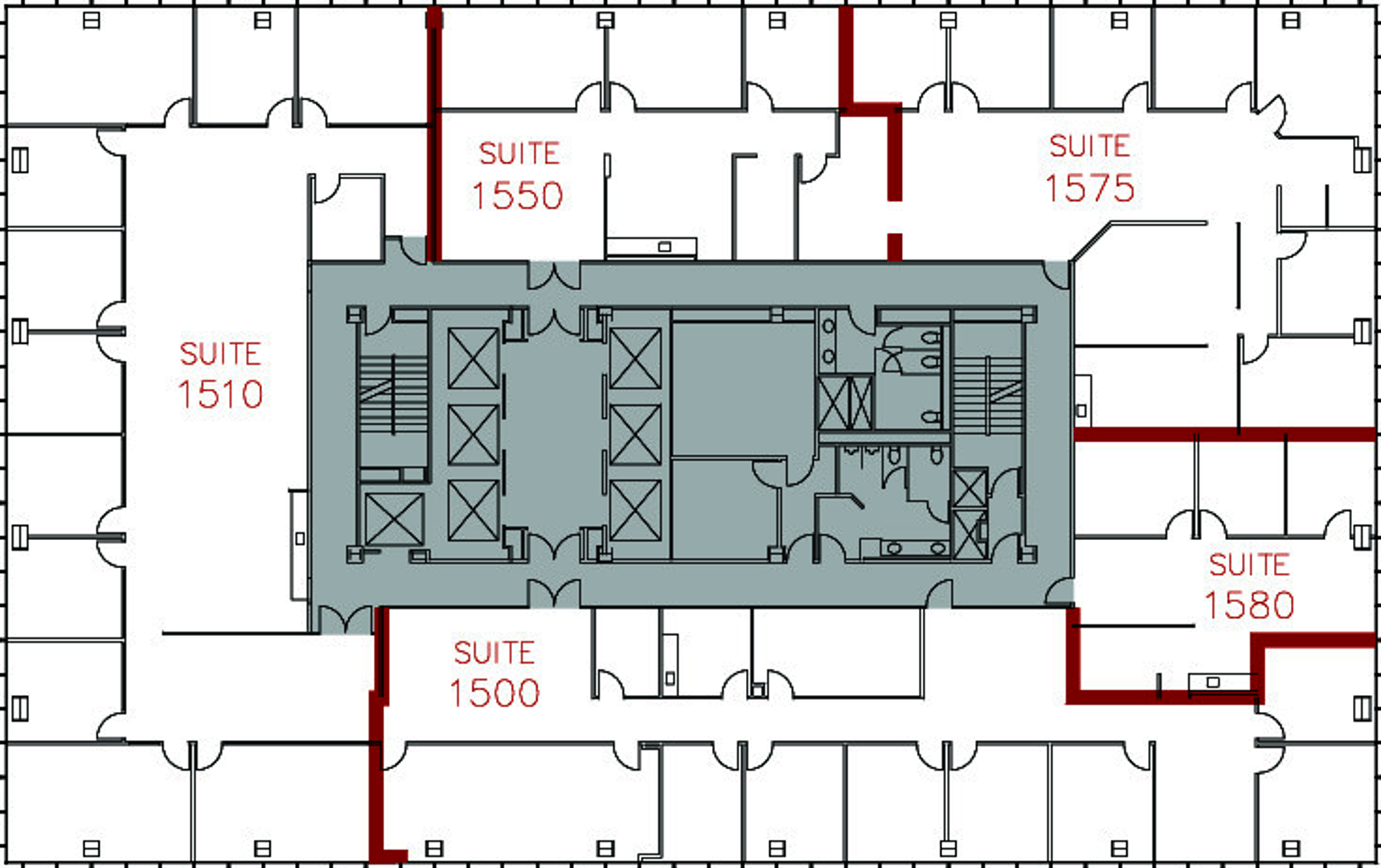 Unit 1510 is a well-appointed suite featuring a mostly open floor plan designed to support both collaboration and focus—ideal for midsize teams or project-driven operations.