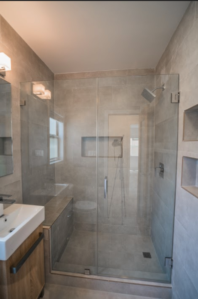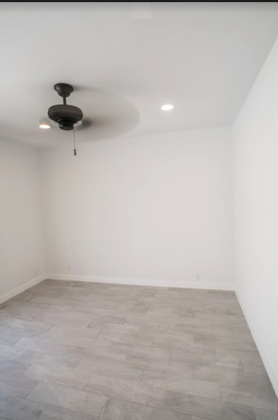 The bathroom impresses with floor-to-ceiling light grey tile, brightening the space and adding a contemporary touch. Storage is plentiful with large closets throughout the unit. For comfort, the living room includes an AC unit, and the bedroom features a cooling ceiling fan—perfect for warm summer nights.