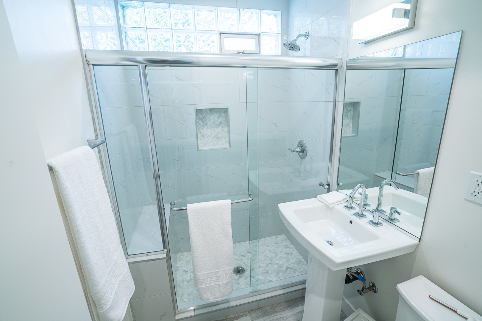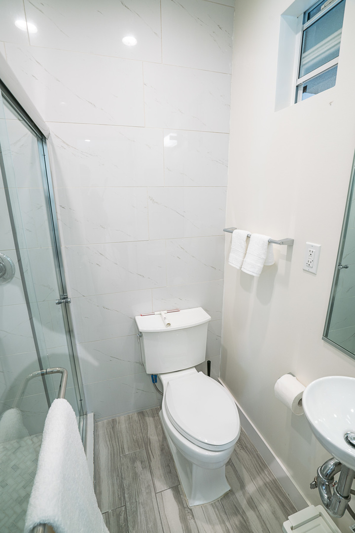 Both bedrooms are filled with natural light, and each bathroom showcases European-style finishes, glass-enclosed showers, and modern fixtures. Enjoy the outdoors with your own large private patio — perfect for relaxing or entertaining.