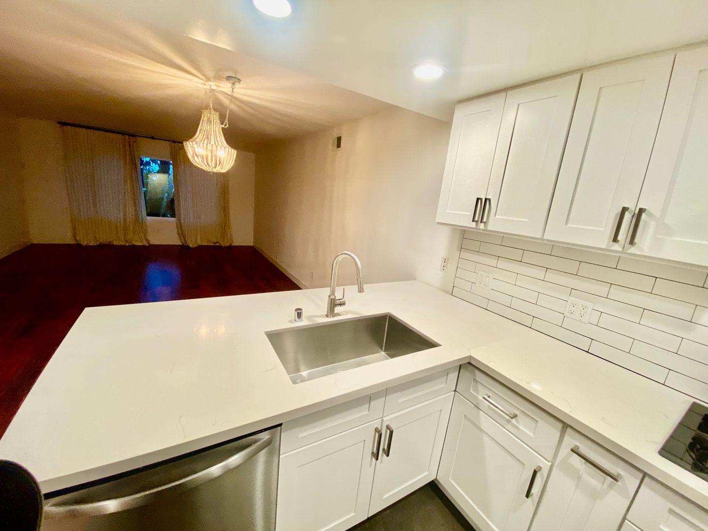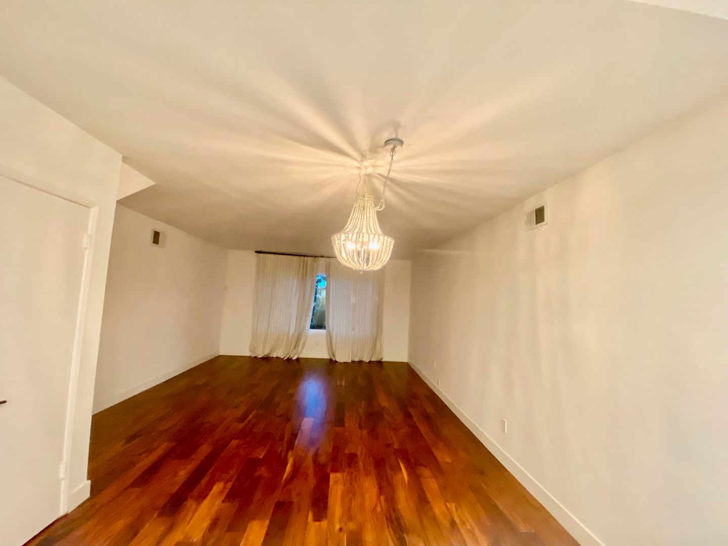 This charming home features a large, sun-filled living room with beautiful hardwood flooring throughout and a modern kitchen equipped with stainless steel appliances and a generous bar counter—perfect for entertaining.