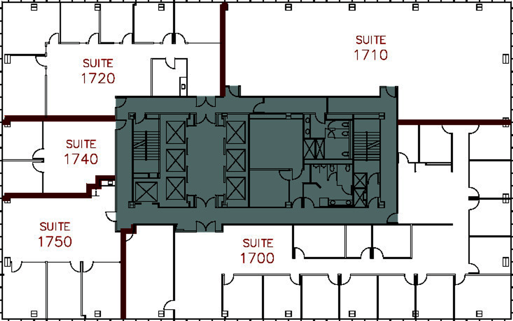 Suite 1740 is a compact second-generation office ideal for budget-conscious tenants or small professional teams in need of two private offices and an efficient footprint.